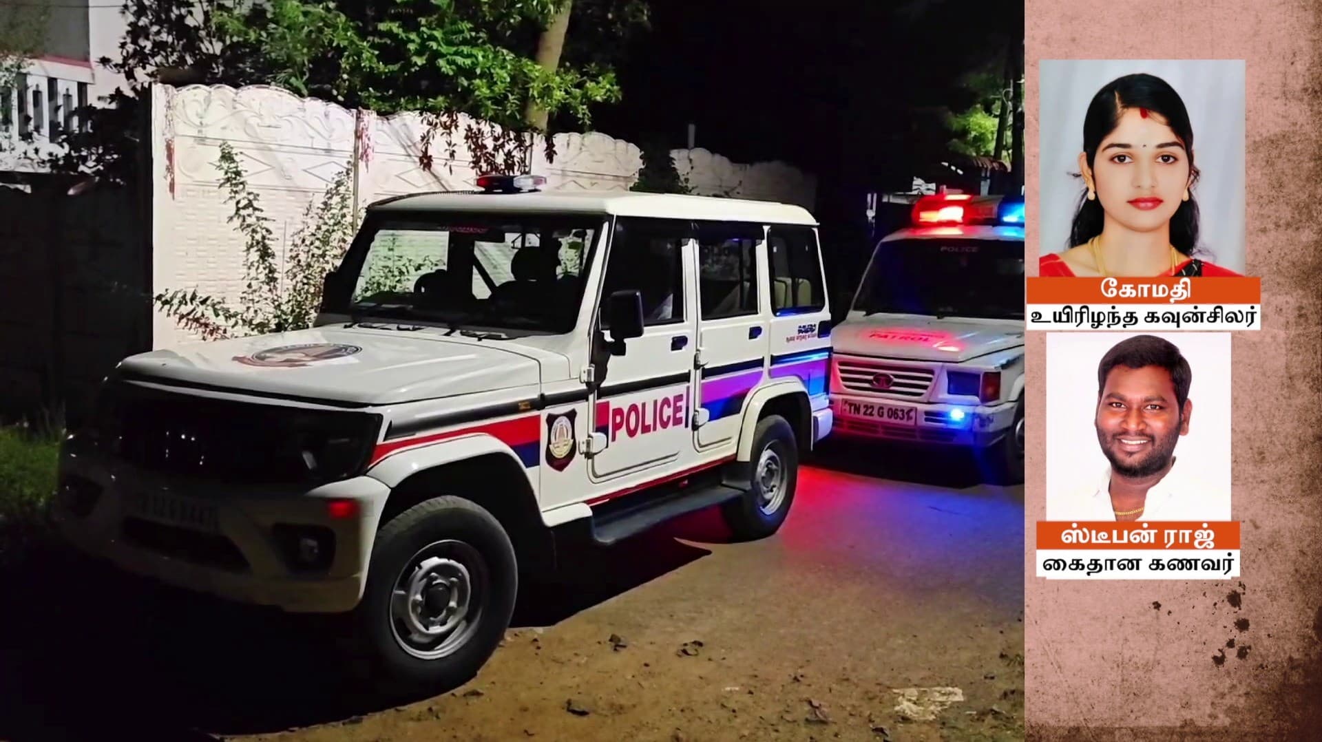 திருவள்ளூர் மாவட்டம் திருநின்றவூரில் பெண் கவுன்சிலரை கொலை செய்ததாக கணவர் போலிசாரிடம் சரண் அடைந்தார். 26வது வார்டு கவுன்சிலரான கோமதி-ஸ்டீபன் ராஜ் தம்பதிக்கு 4 ஆண் குழந்தைகள் உள்ளனர்.